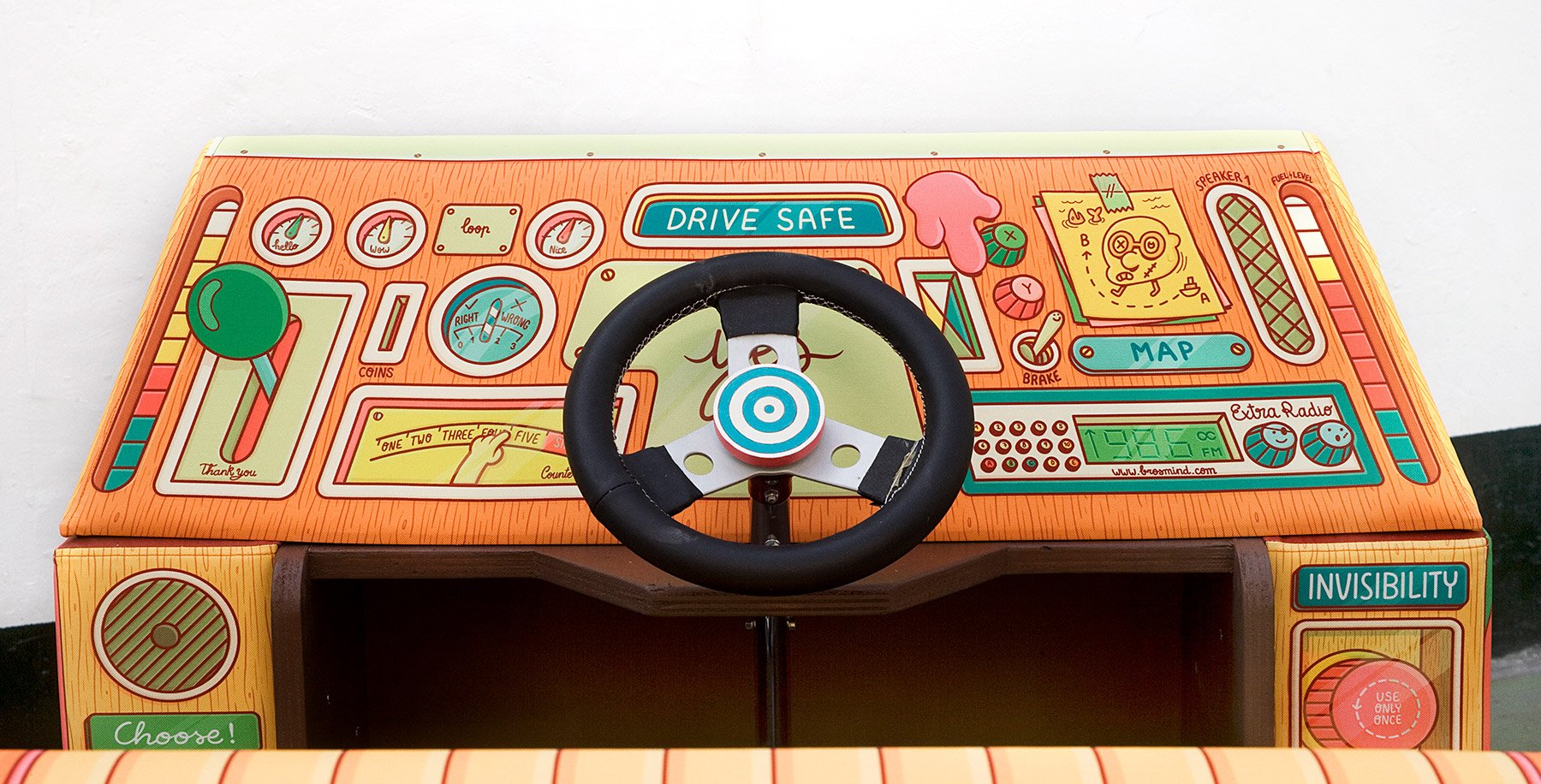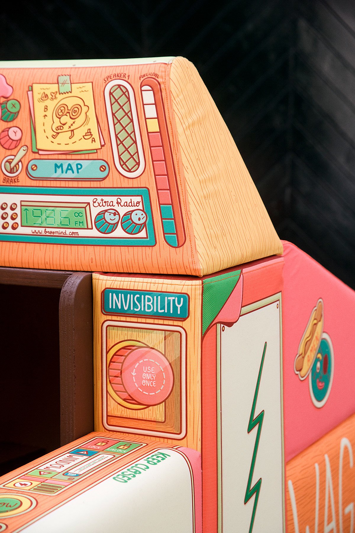 Brosmind Wagon was created for ON! Handcrafted Digital Playgrounds, a group exhibition at The Contemporary Arts Center in Cincinnati in 2013. Héctor Ayuso invited a group of artists and designers to make pieces which reflected upon play and allowed visitors to interact with them. With that in mind, we decided to make this new pedal car which could be driven around the exhibition.